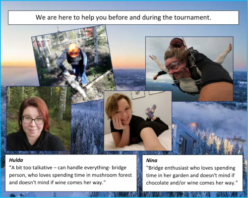 Have any pictures for us? Perhaps of an unknowing team mate, a sleeping travel partner or a focused opponent? Send them to us and we'll post 'em!Please send them to nordics.kuopio@bridgefinland.comHulda and Nina
