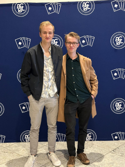Castor Mann ja Erik Hansson ovat pelanneet yhdessä vuodesta 2015 saakka, ja he ovat edustavat kansainvälisissä arvokisoissa Ruotsia. Pari on voittanut sinikeltaisille juniorien maailman, Euroopan ja Pohjoismaiden mestaruudet. Ronan Valentine on puolestaan voittanut Junior Camrose -kilpailun Skotlannille. Hansson opiskelee kauppatieteitä Hankenilla, ja Valentine on opettajana kansainvälisessä koulussa Vantaalla. Mann puolestaan opiskelee tietotekniikkaa Tukholmassa. Erik ja Castor ovat ottaneet ensimmäisiä askeliaan ammattilaisbridgessä. Kuva on Atlantasta, jossa pelattiin Fall NABC -turnaus vuonna 2023.